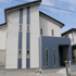 白にブルーグレーの縦ラインがクールなイメージの外観です。 淡いトーンでまとめた室内は明るいのに落ち着いていて、工夫を凝らした収納によってさらにゆったりと感じられます。